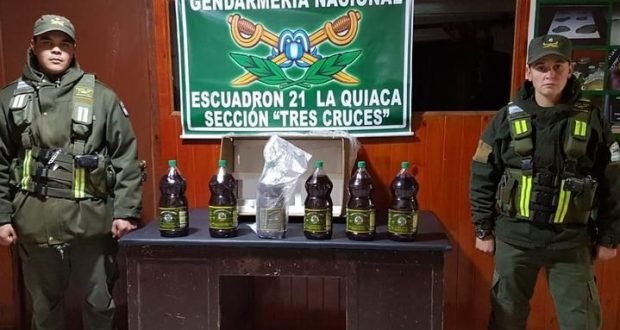 Durante un control rutinario, efectivos de la Gendarmería Nacional requisaron un automóvil que brinda servicios de remis proveniente de la ciudad de La Quiaca con destino a San Salvador de Jujuy, y allí se detuvo a un sujeto de nacionalidad venezolana con radicación en nuestro país que entre sus pertenencias tenía 6 botellas de 3.000 cm3 cada una de aceite de cannabis