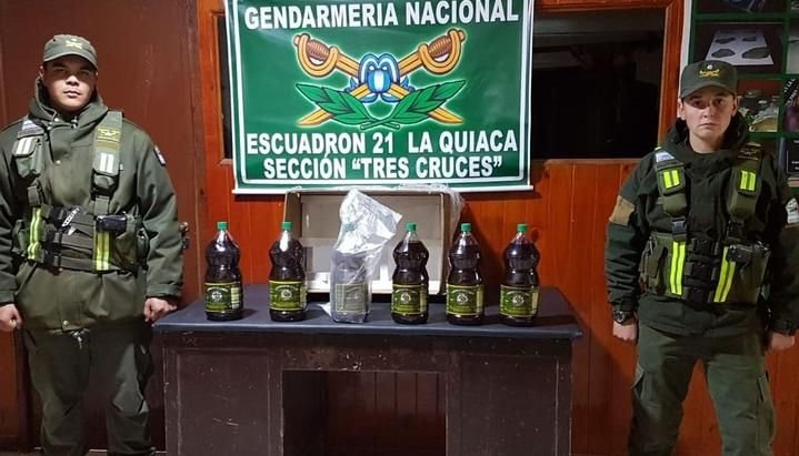 Durante un control rutinario, efectivos de la Gendarmería Nacional requisaron un automóvil que brinda servicios de remis proveniente de la ciudad de La Quiaca con destino a San Salvador de Jujuy, y allí se detuvo a un sujeto de nacionalidad venezolana con radicación en nuestro país que entre sus pertenencias tenía 6 botellas de 3.000 cm3 cada una de aceite de cannabis