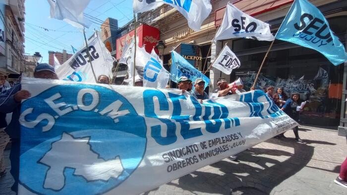 El Sindicato de Empleados y Obreros Municipales (Seom), realizaron este jueves una marcha por recomposición salarial igual a la inflación …