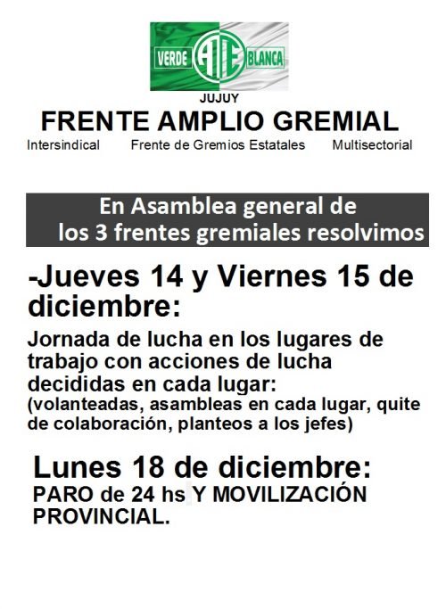 Leer más »El Frente Amplio Gremial realizará jornadas de lucha en los lugares de trabajo