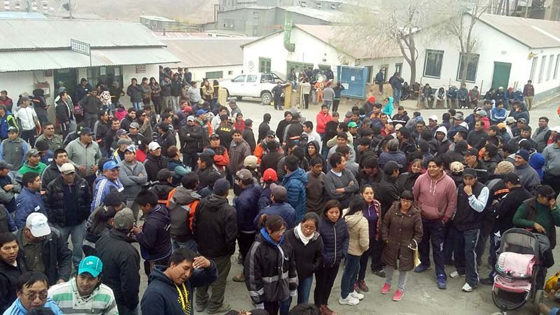 Los trabajadores de Minera Aguilar están de paro, con una permanencia frente a las oficinas de la empresa, donde organizaron …