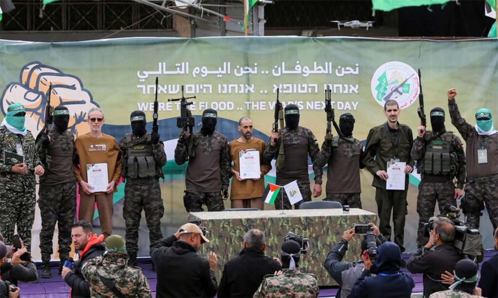 Las milicias de Hamas liberaron a tres rehenes israelíes en un acto organizado en Deir el-Balah, en el centro de Gaza. Los secuestrados, visiblemente demacrados, fueron entregados a la Cruz Roja en el quinto intercambio de la tregua con Israel. Se trata de Ohad Ben Ami, de 56 años; Eli Sharabi, de 52; y Or Levy, de 34, quienes fueron secuestrados durante el ataque del 7 de octubre de 2023.