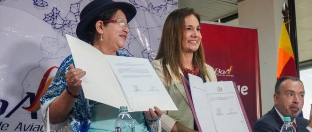 El pacto, suscrito por la canciller boliviana, Celinda Sosa, y la subsecretaria chilena de Relaciones Exteriores, Gloria de la Fuente, fue oficializado en el aeropuerto de Viru Viru de la ciudad de Santa Cruz (este) durante el vuelo inaugural de la estatal Boliviana de Aviación (BoA) a Santiago.