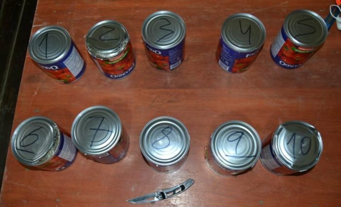 Finalizada la apertura de dicha encomienda se detectan diez (10) latas con la inscripción “Facundo latas de tomate”, las cuales presentan un peso no característico para el producto, no obstante hallarse herméticamente cerradas y de apariencia idéntica a la manufactura industrial original para los envases.