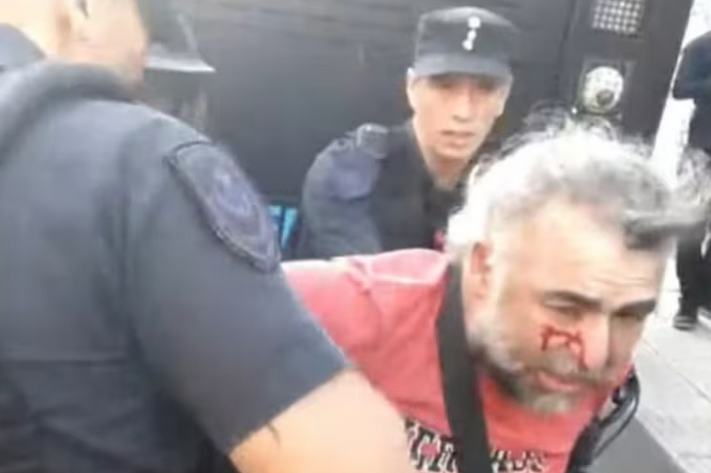 Tras unos pocos minutos, al menos una docena de manifestantes fueron detenidos por efectivos de la Policía Federal. La Policía también agredió a camarógrafos y periodistas que cubrían lo que pasaba en el lugar: un camarógrafo de A24 fue tirado al piso, golpeado y detenido.