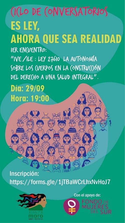 La ONG Juanita Moro inicia el proyecto “¡Es Ley! Ahora, que sea realidad. Ejerciendo nuestros derechos, viviendo nuestras sexualidades e identidades en libertad”, que consistirá en una serie de actividades en torno a la Ley 27.160 de Interrupción Voluntaria del Embarazo y otros aspectos relacionados con la salud sexual y reproductiva.