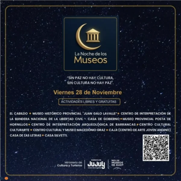 Jujuy se prepara para vivir la 14° edición de la Noche de los Museos, una propuesta que convoca a familias, estudiantes, turistas y amantes del patrimonio a disfrutar de una jornada extendida de actividades culturales y visitas especiales.