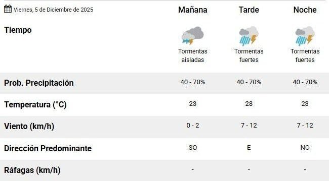 El Servicio Meteorológico Nacional (SMN) renovó este viernes el aviso que incluye a zonas de Puna, Quebrada y los Valles. Se esperan lluvias intensas, granizo y ráfagas que podrían alcanzar los 70 km/h.