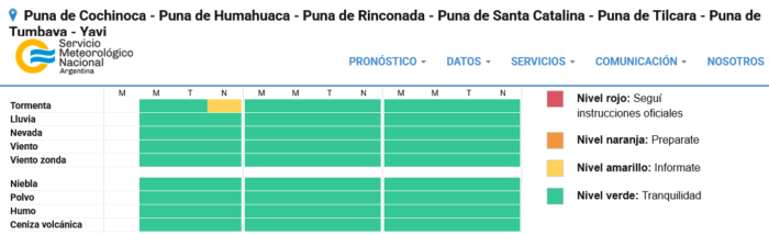 El Servicio Meteorológico Nacional emitió una alerta amarilla por tormentas para la provincia de Jujuy. El organismo advierte que podría caer granizo con ráfagas de viento en horas de la noche de este martes