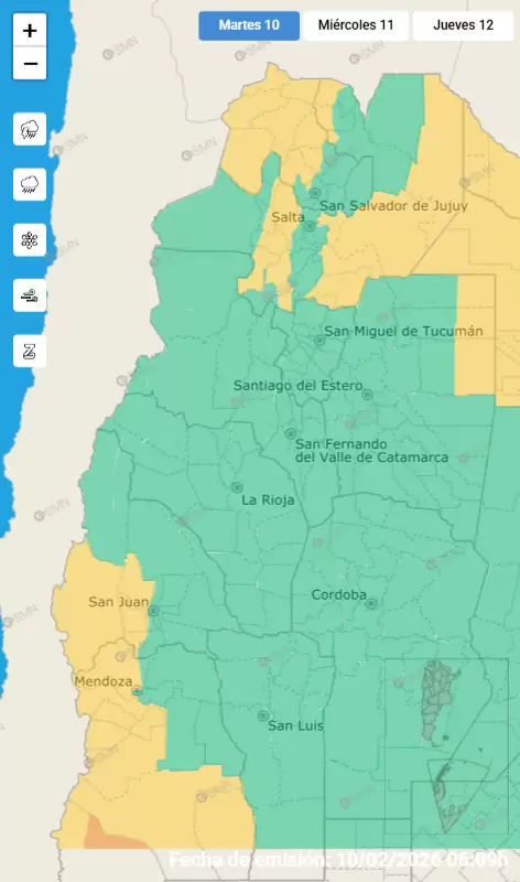 El Servicio Meteorológico Nacional renovó la alerta amarilla por fuertes tormentas para gran parte del territorio de Jujuy. El reporte del organismo señala que las fuertes tormentas se desarrollarán durante la noche del martes, la tarde-noche del miércoles y la tarde del jueves.