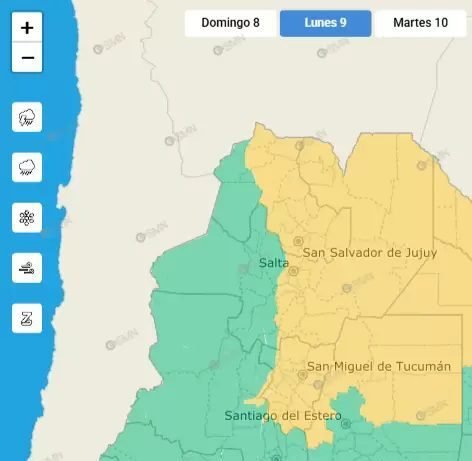 Sigue vigente la alerta amarilla por tormentas en gran parte de la provincia de Jujuy, según el Servicio Meteorológico Nacional.