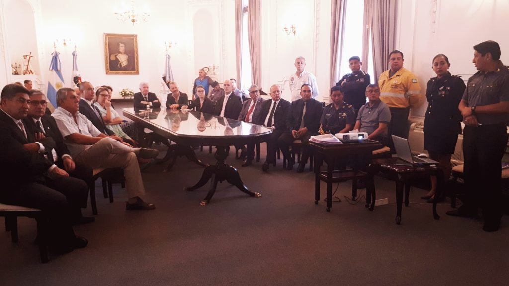 En el marco del convenio de Cooperación Internacional entre Francia y Jujuy, la comitiva francesa se reunió con funcionarios del Ministerio de Seguridad con quienes se abordaron distintos aspectos técnicos del trabajo del personal de Bomberos, así como las herramientas de trabajo utilizados.
