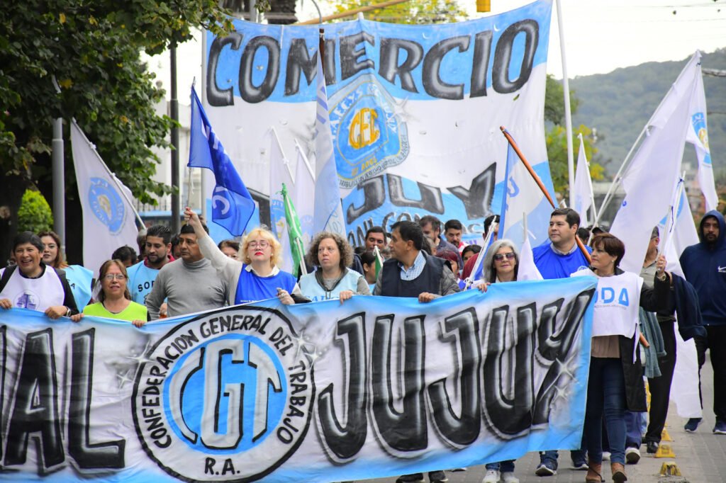 La CGT-Jujuy se movilizó a la plaza Belgrano en apoyo a los jubilados, mejoras salariales y paritarias libres, entre otros reclamos. También marcharon e hicieron una radio abierta los sindicatos docentes y estatales de la provincia, que adhieren al paro nacional convocado por la CGT y las CTA para este jueves.