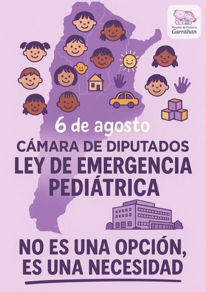 «Desde ‘Soy Garrahan’, el colectivo de madres y padres de pacientes y ex pacientes del Hospital Garrahan, volvemos a alzar la voz. Esta vez, para convocar a toda la comunidad a acompañarnos el miércoles 6 de agosto, día en que se vota en el Congreso Nacional la Ley de Emergencia sanitaria de la salud pediátrica y de las residencias nacionales en salud. Esta ley puede marcar un antes y un después para los miles de niños y niñas que dependen de este hospital y de tantos otros del sistema público», indicaron.