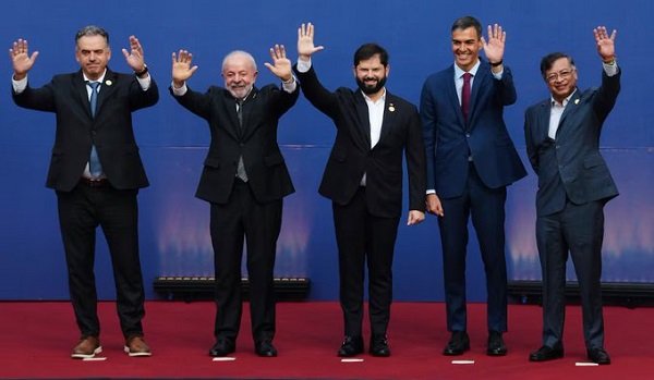 Este encuentro entre los presidentes Boric, Luiz Inácio Lula da Silva, Pedro Sánchez, Gustavo Petro y Yamandú Orsi, trabaja tres ejes principales: el fortalecimiento de la democracia y el multilateralismo; la reducción de las desigualdades, y la lucha contra la desinformación, así como la regulación de tecnologías emergentes.