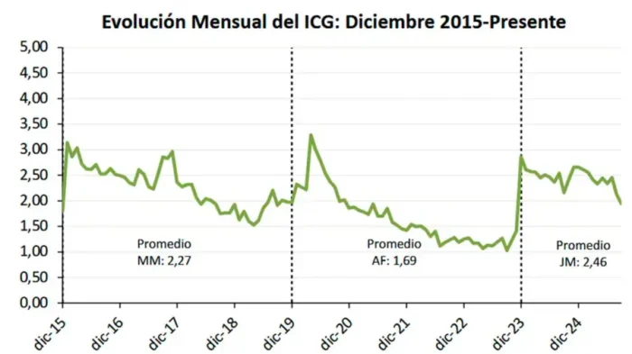 Todos los subíndices del ICG mostraron retrocesos: Honestidad de los funcionarios (2,44, -3,7%), Capacidad para resolver problemas (2,38, -3,1%), Eficiencia en el gasto público (1,87, -11,2%), Evaluación general del gobierno (1,57, -11,5%) y Preocupación por el interés general (1,47, -15,1%).