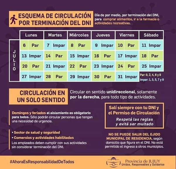 Martes 7, jueves 9 y sábado 11, están habilitadas a circular las personas con documentos impartes.