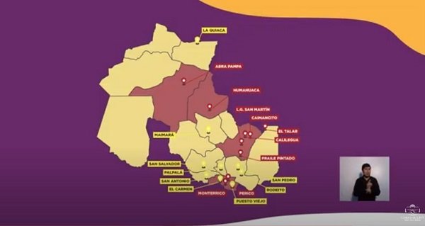 Zona Roja: Abra Pampa, Humahuaca, Libertador, Caimancito, El Talar, Calilegua, Perico, Fraile Pintado y Monterrico.