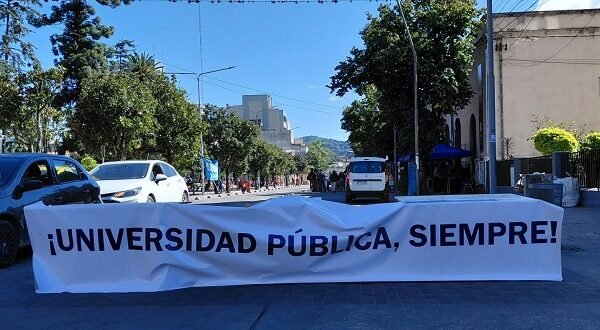 En Jujuy, la comunidad educativa de la UNJu se expresó en la sede de la avenida Gorriti, frente a la plaza Belgrano, donde se dictaron clases públicas y se informó a la comunidad sobre la situación que atraviesa la casa de estudios.