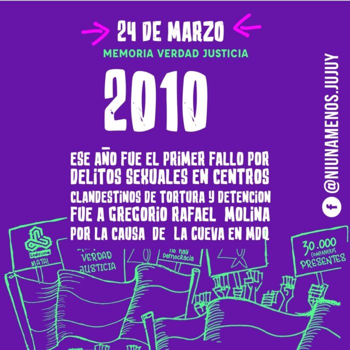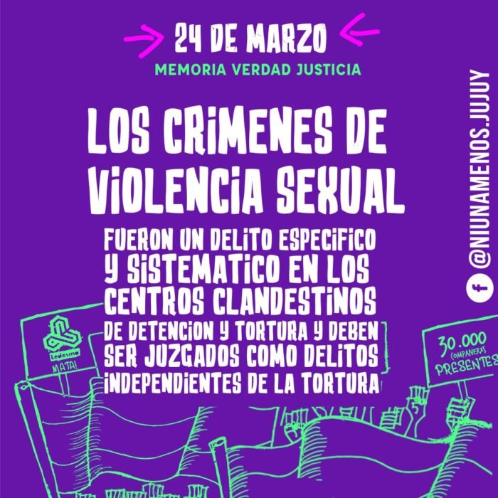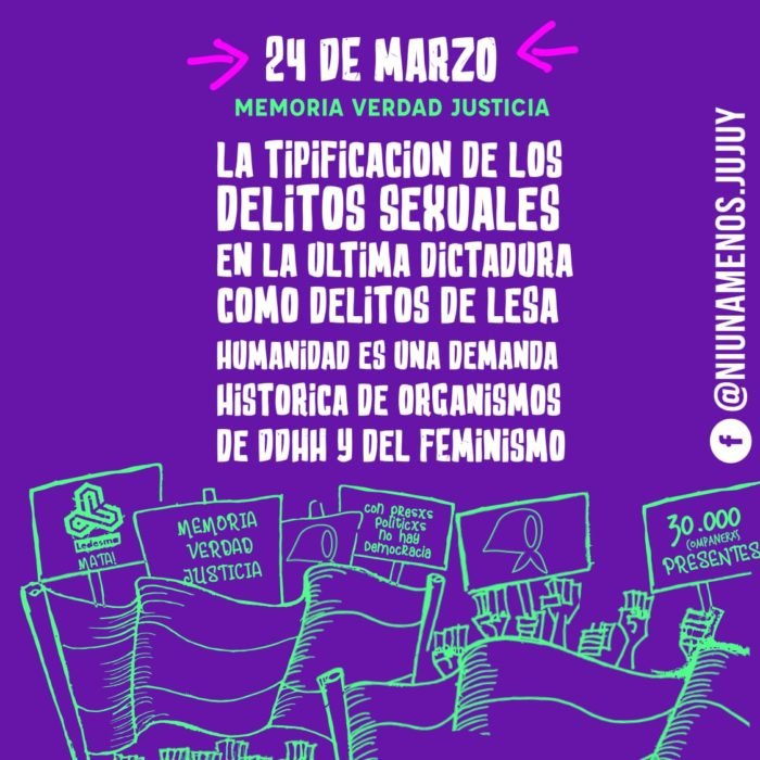 La Colectiva también señala que la tipificación de los delitos sexuales como delitos de lesa humanidad son una conquista de los organismos de DDHH y del feminismo. Y expresa que en Jujuy hay una deuda con respecto a estos delitos: En los juicios en nuestra provincia aparecieron en los testimonios sobrados elementos probatorias respecto de las violaciones y los abusos, sin embargo, no se los reconoció como delitos específicos.