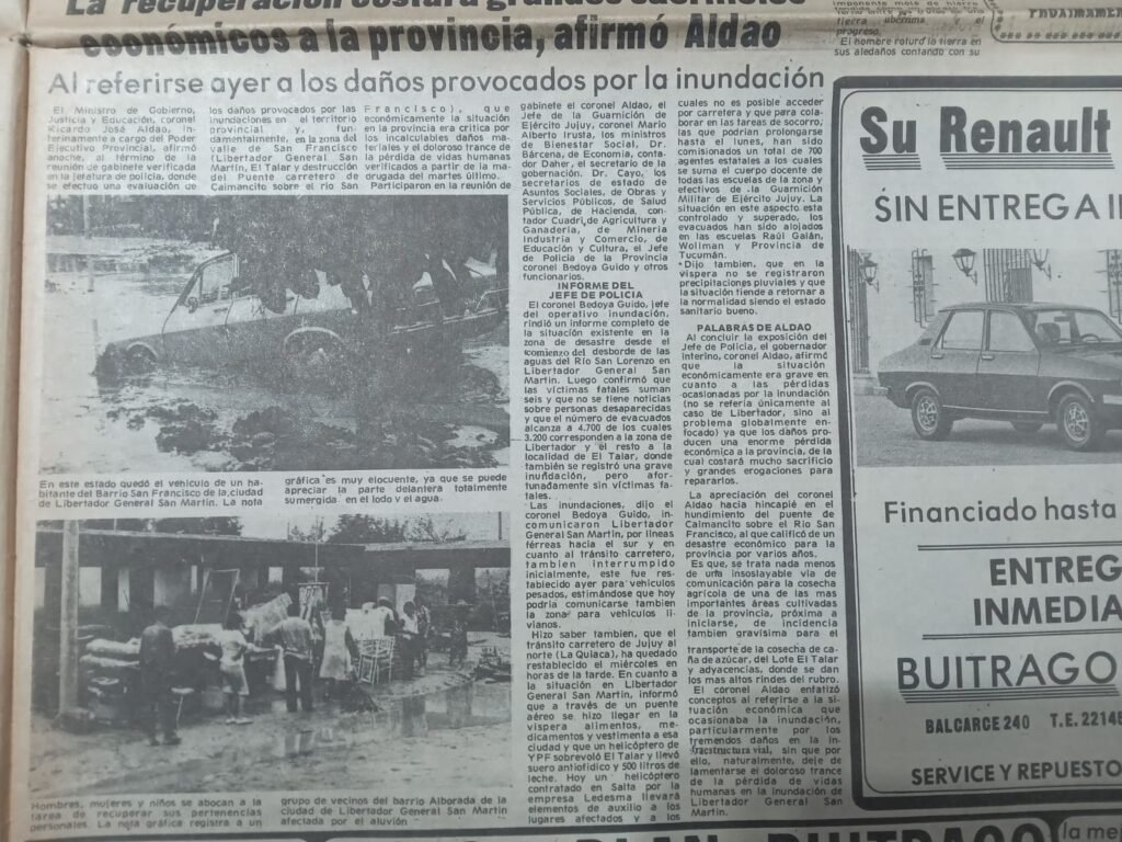 Dicho diario también se encargó de reconocer la inmediata solidaridad popular ledesmense que hubo con los inundados tanto en tareas de defensa civil de muchos pobladores, pese a la negativa del gobierno militar y el personal de la empresa, como también la ayuda con calzados y ropa que llevaron los habitantes de Libertador no afectados por el desastre a los inundados que fueron alojados en las inmediaciones de la escuela Raúl Galán y la Escuela Provincia de Tucumán, más conocida como N°261.