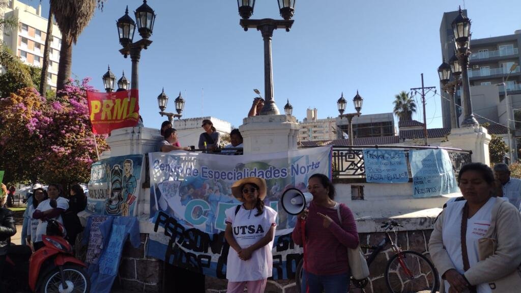 Trabajadores/as del Hospital Oscar Orías de Libertador, del Hospital Wenceslao Gallardo de Palpalá, del Centro de Especialidades Norte, y la Unión de Trabajadores de la Salud Autoconvocados, se manifestaron frente Casa de Gobierno.