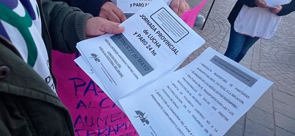 La jornada provincial de protesta incluyó un abrazo simbólico al Hospital Pablo Soria y contó con la participación de referentes de distintos puntos de la provincia. Sobre el mediodía, se apostaron en la peatonal Belgrano para informar a la comunidad sobre las razones de la medida de fuerza.