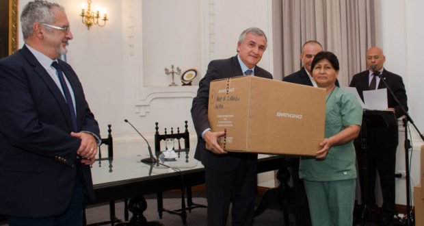 El gobernador Gerardo Morales presidió en el Salón Blanco el acto de entrega de cheques a los municipios de Palpalá por un monto de 1.289.182 pesos y para San Pedro por un valor de 2.289.250 pesos, correspondientes al Programa Municipios Saludables; un videocolonoscopio de última generación, destinado al hospital “Pablo Soria” y 24 computadoras para el Departamento Provincial de Inmunizaciones. Estas acciones forman parte de la ejecución en todo el territorio del Plan Estratégico de Salud.