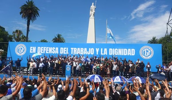 El nuevo triunvirato de la Confederación General del Trabajo (CGT) encabezó un masivo acto en la Plaza de Mayo en contra de la reforma laboral. El primer triunviro que tomó la palabra fue Octavio Argüello, quien advirtió que si el Gobierno no escucha el reclamo de los trabajadores, el plan de lucha terminará en un paro nacional.