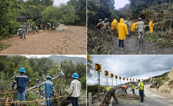 «Se mantiene en alerta la Fuerza de Apoyo para Casos de Desastre (FACD), equipada con 512 unidades de maquinaria, 17 aeronaves, 10 cocinas comunitarias, 10 tortilladoras móviles y 48 plantas potabilizadoras de agua.