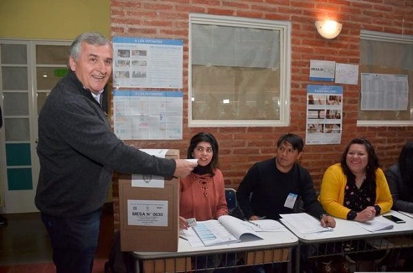 «Quiero pedirles a todos que concurran a votar», expresó el gobernador Gerardo Morales al momento de emitir su voto en la Escuela Nueva Siembra, aunque remarcó que «la elección determinante es en octubre».