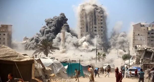 El primer ministro de Israel, Benjamin Netanyahu, que enfrenta una orden de arresto emitida por la Corte Penal Internacional, señaló el lunes que el ejército israelí había detonado 50 torres residenciales en la ciudad en dos días.