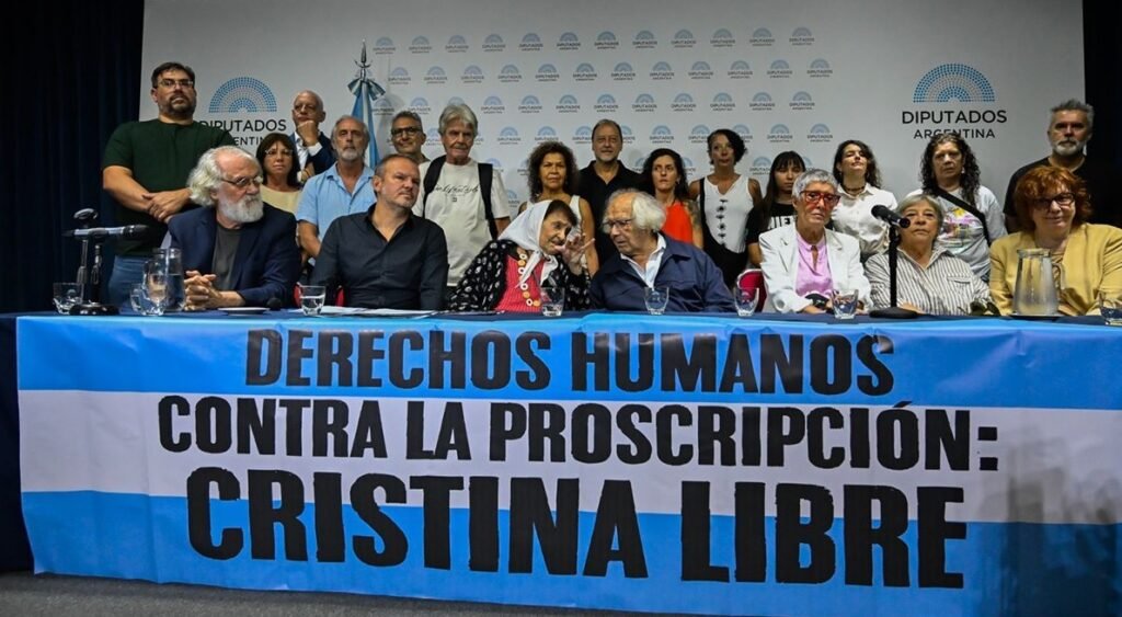 Organismos de Derechos Humanos realizaron una conferencia de prensa contra las restricciones que el Tribunal Oral Federal 2 de Comodoro Py impuso a Cristina Fernández de Kirchner en su prisión domiciliaria. Y denunciaron: «Para ella nada, para los genocidas todos los beneficios».
