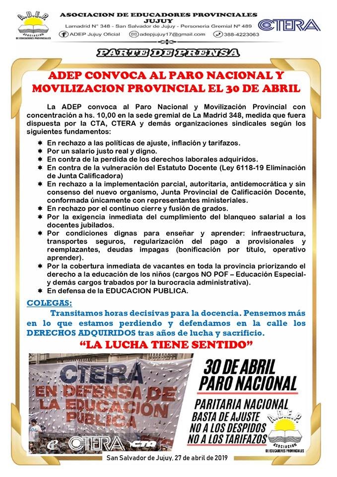 La Asociación de Educadores Provincial (Adep), el Centro de Docentes de Enseñanza Media y Superior (Cedems), junto a la Intersindical, se movilizan en la jornada de lucha que se llevará a cabo, mañana, martes, en contra de la crisis que vive el país.