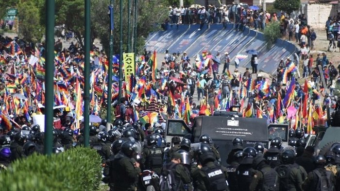 Varias marchas confluyen desde distintos puntos de Bolivia hacia La Paz para exigir la renuncia de la presidenta de facto …