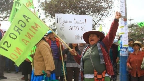 Con el lema “Agro sí, mina no” los habitantes de la provincia de Islay han tomado las calles de sus …