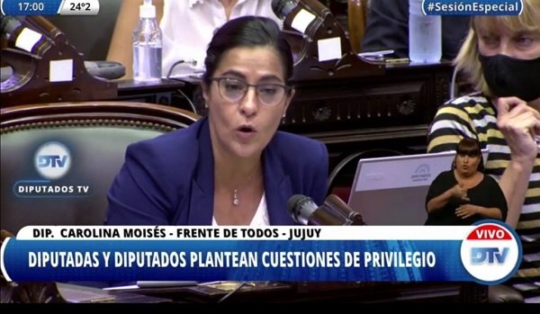 La legisladora nacional del Frente de Todos, María Carolina Moisés en sesión especial presentó una cuestión de privilegio contra el Gobernador Gerardo Morales por violar el estado de derecho en Jujuy.