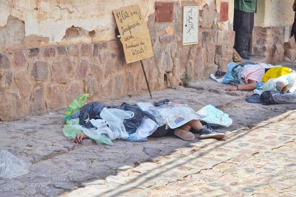 La misma consistió en un montón de cuerpos moribundos acompañados por las familias dolientes tirados en las calles cubiertos de desechos, en franca alusión a los cuerpos de mujeres encontrados en basurales y descampados. La intención era mostrar la indiferencia de la sociedad y las instituciones.
