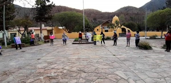 En Tumbaya la convocatoria se realizó el día miércoles. El comentario más escuchado fue: “Es la primera vez que hacemos una actividad de este tipo en el pueblo”. En vez de marchar las participantes hicieron ronda en la calle entre la iglesia y la plaza. Hicieron fila india, cuidando la distancia, por las calles del pueblo luciendo sus carteles.