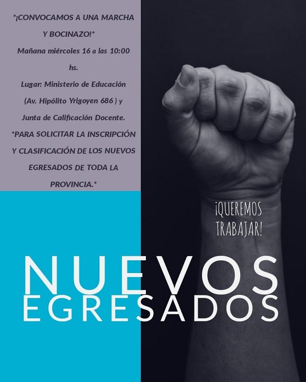 En una carta abierta a la opinión pública, señalan: “Los más de 200 nuevos egresados 2019 de Educación Secundaria de toda la provincia de Jujuy, solicitamos a la ministra de Educación, Isolda Casina autorice la inscripción y clasificación para los nuevos egresados en las distintas regiones educativas.