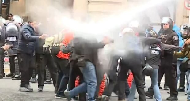 Represión frente al Congreso: Atacaron a los manifestantes con camiones hidrantes y balas de goma
