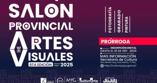 La Secretaría de Cultura de Jujuy informa que se extiende hasta el 1 de septiembre el plazo de inscripción para participar de la 6ta edición del Salón Provincial de Artes Visuales, certamen que premiará a las disciplinas de pintura, fotografía y grabado con más de diez millones de pesos en premios.