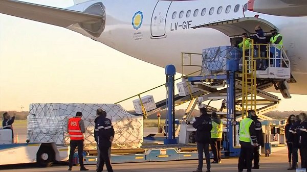 Un vuelo de Aerolíneas Argentinas con un nuevo cargamento de componentes 1 y 2 de la vacuna Sputnik V y …