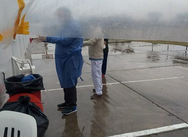 En el hospital de campaña de San Pedro de Jujuy, el personal médico tiene que cambiarse la ropa a la …