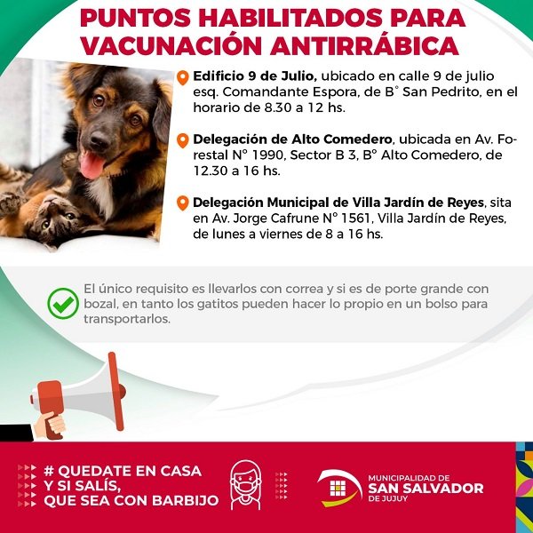 Leer más »Vacunación antirrábica gratuita en Reyes, Alto Comedero y San Pedrito