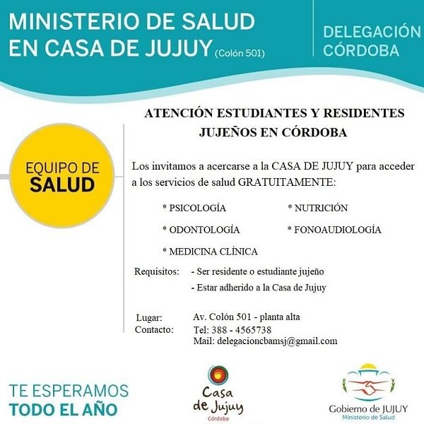 La Casa de Jujuy en Córdoba informa que el próximo 3 de febrero se reanudará la atención de la delegación …