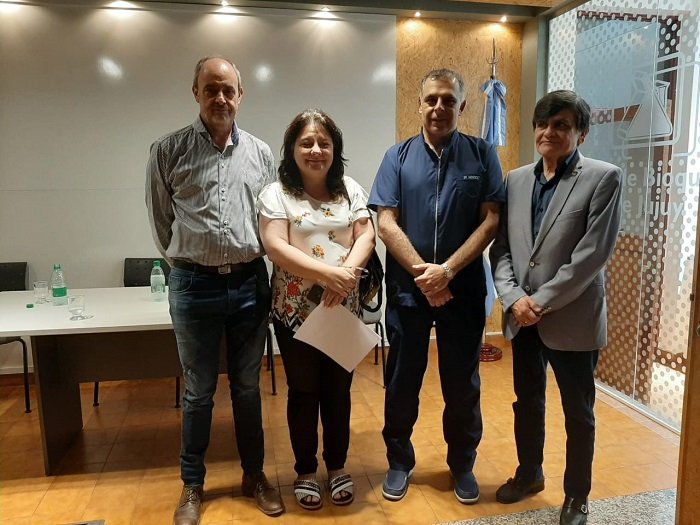 Los dirigentes locales, entre ellos, Julio Obelar Colegio Médico de Jujuy, Eduardo Pintado del Colegio de Bioquimicos, Claudia Martino colegio de Farmacéuticos, entre otros, durante una conferencia de prensa, expusieron la situación de crisis que atraviesa el sector en el país, principalmente impulsado por los altos costos de los insumos, la carga impositiva y los problemas financieros que ponen en riesgo la calidad de las prestaciones.