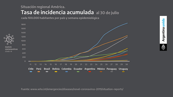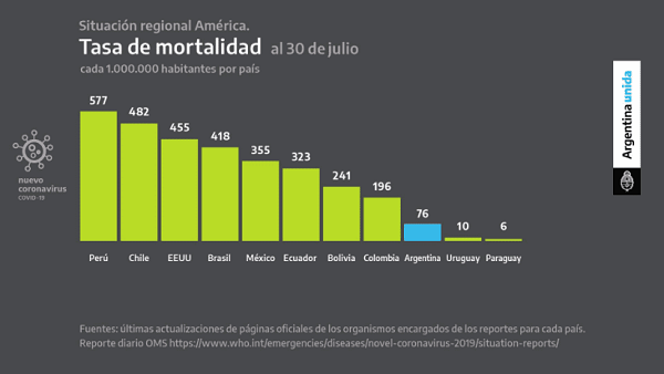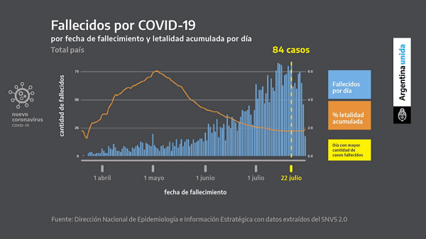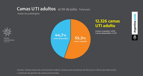 En números, la cifra de muertos por Covid-19 en Argentina es de 3466 y ayer tuvo el pico máximo de 153 fallecidos y más de 6.300 contagiados en todo el país, donde hay varias provincias con nuevos brotes, pero el nivel de ocupación de camas de terapia intensiva se mantiene en 55,3% a nivel nacional y en el 64,5% en el AMBA y no sigue el mismo ritmo de la curva de contagios.
