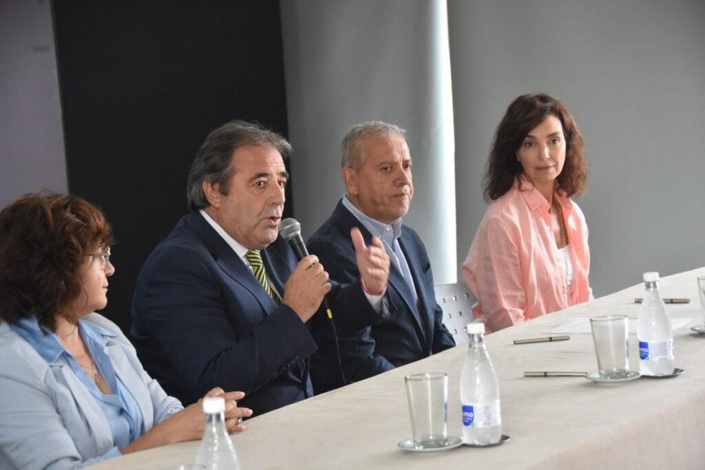 Se firmó el convenio Acuerdo Escolar 2024 entre el gobierno, librerías, comercios y el Banco Macro. El vicegobernador de la provincia, Alberto Bernis, a cargo del Ejecutivo, encabezó el acto, junto al ministro de Desarrollo Económico y Producción, Juan Carlos Abud, su colega de Educación, Miriam Serrano y la gerente divisional del Banco Macro, Andrea Madariaga y representantes de diferentes firmas comerciales.