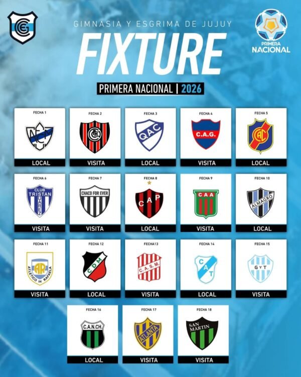 El sorteo realizado por la Asociación del Fútbol Argentino (AFA), definió que Gimnasia y Esgrima de Jujuy integra la Zona B, con debut previsto para el 7 de febrero frente a Ferrocarril Midland en el estadio “23 de agosto”.